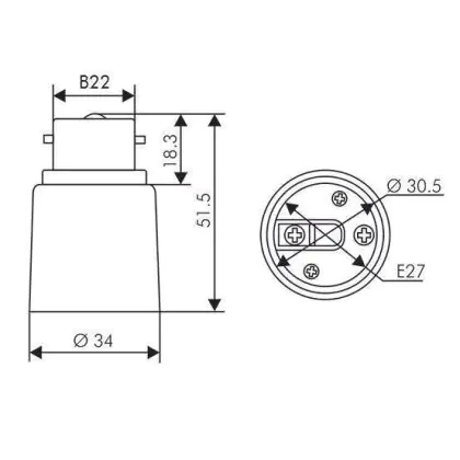 Beschreibung Adapter für Lampenhalterung B22 => E27 Weiß
