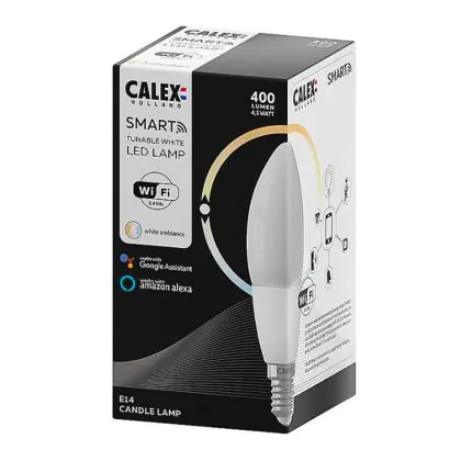 Die kerzenförmige Smart-Home Leuchte von Calex erinnert zwar an eine klassische Glühbirne mit E14 Sockel, sie ist jedoch mit der neusten LED-Technik ausgestattet, welche viele Vorteile mit sich bringt. Dazu gehören eine lange Lebensdauer, verbunden mit geringen Ersatz- und Wartungskosten, wodurch eine schnelle Amortisation des Kaufpreises garantiert wird. Zudem sind LEDs umweltfreundlich, denn anders als beispielsweise Halogenlampen beinhalten sie kein Quecksilber. Wechseln Sie Ihre herkömmliche E14 Lampe einfach gegen das smarte LED-Modell von Calex aus!