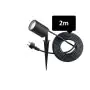 Der Erdspieß ermöglicht eine einfache Platzierung im Boden. Das 2 Meter lange Kabel mit EU-Stecker erleichtert den Anschluss an eine Stromquelle.