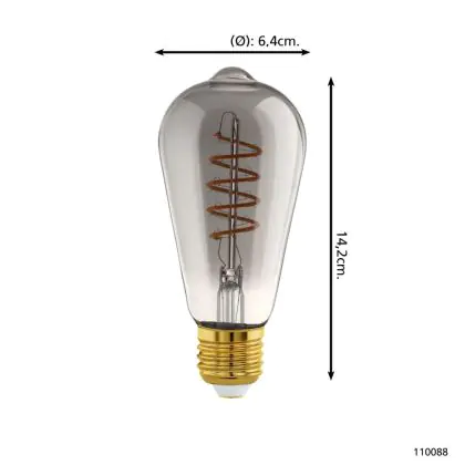 Beschreibung Eglo LED Edison E27 Fadenlampe Smokey 4W 100lm - 820 Extra Warmweiß | Dimmbar - Ersatz Für 15W