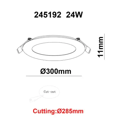 | Herstellername | White label LED Downlight Round UltraSlim 24W 1950lm 840 CutoutØ280mm FrameØ295mm | |