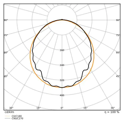 Diese LED-Deckenleuchte punktet mit einer Leuchtkraft von 4.000 lm und strahlt somit einiges an Licht aus. Die ebenfalls hohe Lichtausbeute von 120 lm/W zeugt von einer guten Effizienz. Wenn Sie die Stärke dieses Lichts mit dem Ihrer konventionellen Lichtlösung vergleichen möchten, empfehlen wir Ihnen einen Blick in unsere praktische Tabelle Lumen in Watt umrechnen.
