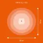 Beispiel: Wird eine Lampe mit einem Abstrahlwinkel von 60 Grad an der Decke (2,5 m Höhe) angebracht, erzeugt sie einen Lichtkegel von 2,9 Metern Durchmesser. Hat die Lampe hingegen einen Abstrahlwinkel von 120 Grad, beträgt der Lichtkegel 8,7 Meter im Durchmesser. |
