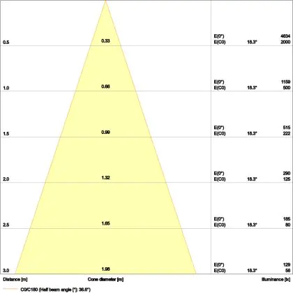 Der LED-Einbauspot kommt mit der Farbtemperatur 4000K - Kaltweiß daher. Als Faustregel gilt: Je niedriger der Kelvinwert, desto gemütlicher wirkt das Licht.