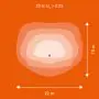 Beispiel: Wird eine Lampe mit einem Abstrahlwinkel von 60 Grad an der Decke (2,5 m Höhe) angebracht, erzeugt sie einen Lichtkegel von 2,9 Metern Durchmesser. Hat die Lampe hingegen einen Abstrahlwinkel von 120 Grad, beträgt der Lichtkegel 8,7 Meter im Durchmesser. |
