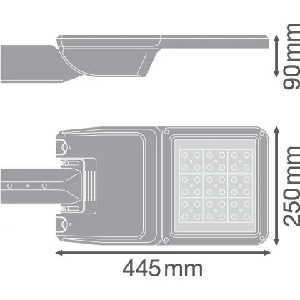 Beschreibung Ledvance LED-Straßenbeleuchtung Flex klein RV25ST Grau 25W 3550lm 25x145D - 740 Kaltweiß | IP66 – Asymmetrisch