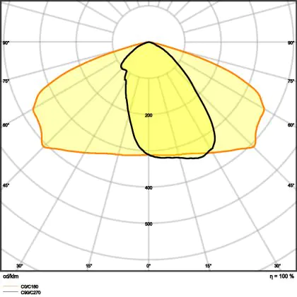 Diese LED-Straßenbeleuchtung strahlt Licht mit einer neutralen kaltweißen Farbtemperatur von 4.000 Kelvin ab. Diese Lichtfarbe erhöht das Seh- und Konzentrationsvermögen.