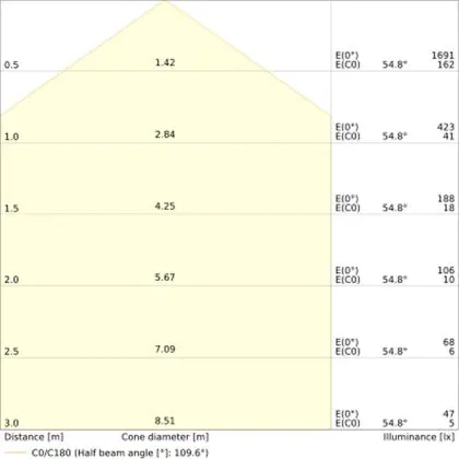 Das LED-Bulkhead kommt mit der Farbtemperatur 3000K - 4000K CCT daher. Als Faustregel gilt: Je niedriger der Kelvinwert, desto gemütlicher wirkt das Licht.