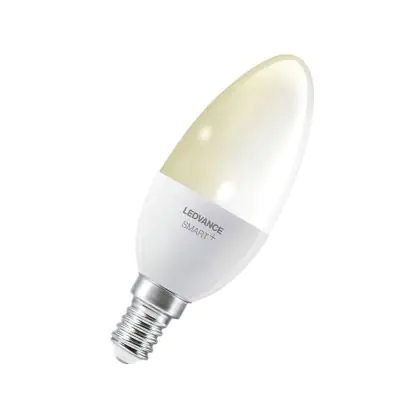 Die Ledvance Smart+ BT E14 Kerze 5W 470lm - 827 Extra Warmweiß | Dimmbar - Ersatz für 40W ist eine effiziente E14 LED-Lampe und der perfekte Ersatz für Ihre konventionellen 40W Lampen mit E14-Sockel. Zudem strahlt sie Licht in der Farbtemperatur 2700K - Extra Warmweiß aus und punktet durch eine lange Lebensdauer.
