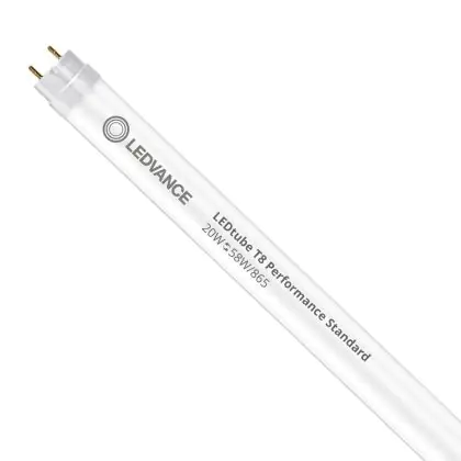 Die T8 LED-Röhren von Ledvance gibt es in verschiedenen Farbtemperaturen: Extra Warmweiß (2.700 K und weniger), Warmweiß (3.000 K), Kaltweiß (4.000 K) und Tageslichtweiß (6.500 K). Diese Röhre strahlt ihr Licht in 6500K - Tageslichtweiß aus.