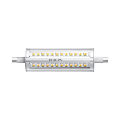 Die Mehrfachpackung 10x Philips Corepro LED Lineair R7s 118mm 14W 1800lm - 840 Kaltweiß | Dimmbar - Ersatz Für 120W ist eine effiziente R7s LED-Lampe und der perfekte Ersatz für Ihre konventionelle Halogen-Stablampe mit 100W. Zudem strahlt sie Licht in der Farbtemperatur 4000K - Kaltweiß aus und punktet durch eine lange Lebensdauer.