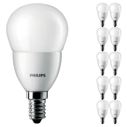 Die Mehrfachpackung 10x Philips Corepro LED Lustre E14 Kugel Matt 2.8W 250lm - 827 Extra Warmweiß | Ersatz für 25W ist eine effiziente E14 LED-Lampe und der perfekte Ersatz für Ihre konventionellen 25W Lampen mit E14-Sockel. Zudem strahlt sie Licht in der Farbtemperatur 2700K - Extra Warmweiß aus und punktet durch eine lange Lebensdauer.