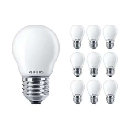 Die Mehrfachpackung 10x Philips Corepro LED Lustre E27 Kugel Matt 4.3W 470lm - 827 Extra Warmweiß | Ersatz für 40W ist eine effiziente E27 LED-Lampe und der perfekte Ersatz für Ihre konventionellen 40W Lampen mit E27-Sockel. Zudem strahlt sie Licht in der Farbtemperatur 2700K - Extra Warmweiß aus und punktet durch eine lange Lebensdauer.