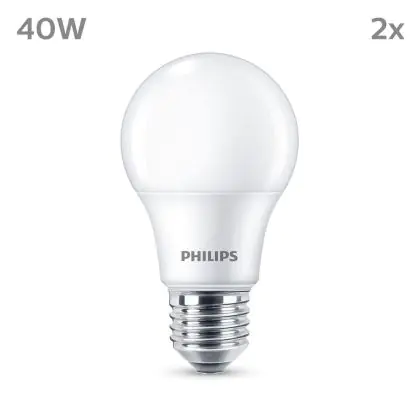 Die Mehrfachpackung 2x Philips Glühbirne LED E27 Birne Matt 5W 470lm - 827 Extra Warmweiß ist eine effiziente E27 LED-Lampe und der perfekte Ersatz für Ihre konventionellen W Lampen mit E27-Sockel. Zudem strahlt sie Licht in der Farbtemperatur 2700K - Extra Warmweiß aus und punktet durch eine lange Lebensdauer.