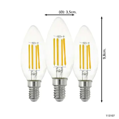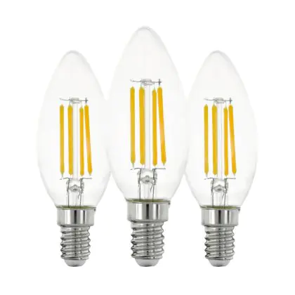 Die Mehrfachpackung 3x Eglo LED Kerze E14 Fadenlampe Klar 21W 806lm - 827 Extra Warmweiß | Ersatz Für 60W ist eine effiziente E14 LED-Lampe mit Retrodesign und der perfekte Ersatz für Ihre konventionellen 60W Lampen mit E14. Zudem strahlt sie Licht in der Farbtemperatur 2700K - Extra Warmweiß aus und punktet durch eine lange Lebensdauer.