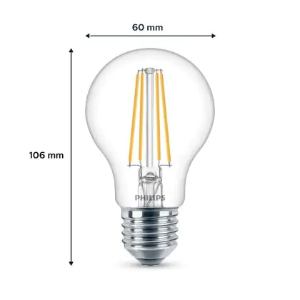 Die Mehrfachpackung 3x Philips Glühbirne LED E27 Birne Fadenlampe Klar 7W 850lm - 840 Kaltweiß ist eine effiziente E27 LED-Lampe mit Retrodesign und der perfekte Ersatz für Ihre konventionellen W Lampen mit E27. Zudem strahlt sie Licht in der Farbtemperatur 4000K - Kaltweiß aus und punktet durch eine lange Lebensdauer.