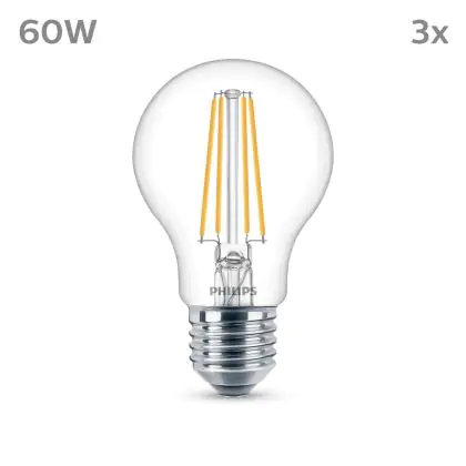 | Herstellername | Box 3 stuks - Philips LED Lamp Transparant - 60 W - E27 - Koelwit licht | |