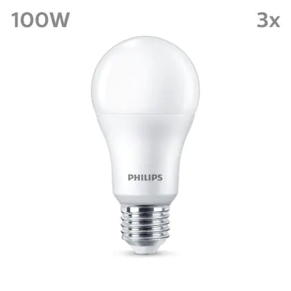 Die Mehrfachpackung 3x Philips Glühbirne LED E27 Birne Matt 13W 1521lm - 840 Kaltweiß ist eine effiziente E27 LED-Lampe und der perfekte Ersatz für Ihre konventionellen W Lampen mit E27-Sockel. Zudem strahlt sie Licht in der Farbtemperatur 4000K - Kaltweiß aus und punktet durch eine lange Lebensdauer.