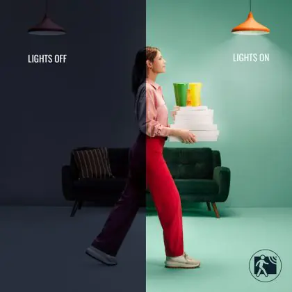 Der Wert Lumen (lm) gibt die Lichtleistung einer Lichtquelle an. Je höher die Lumenzahl, desto mehr Licht strahlt sie aus. Die Leistung (Watt) und die Anzahl an Lumen stehen nicht unbedingt in Zusammenhang: Eine LED strahlt zum Beispiel die gleiche Lichtleistung aus wie eine herkömmliche Lichtquelle, kommt aber mit bis zu 90 % weniger Watt daher.