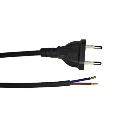 Noxion Euro Versorgungskabel Schwarz - C7 Europlug + Offene Enden - 2m - 2 pole 0,75mm2