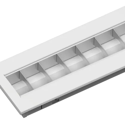 Das Noxion LED Louvre Excell G2. ist ein modernes LED-Panel mit einem besonders geringen Blendwert von < 19. So profitieren Sie von einer blendfreien Lichtlösung für Ihr Büro mit den Maßen 15 x 150 cm. Die Kombination aus Lamellenrastern und matten Reflektoren bietet ein gleichmäßiges und angenehmes Licht. Aufgrund des ebenfalls niedrigen Energieverbrauchs sparen Sie rund 25 % Ihrer Stromkosten ein, sodass eine schnelle Amortisation erreicht wird.