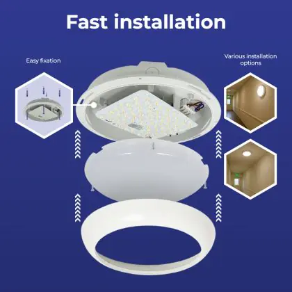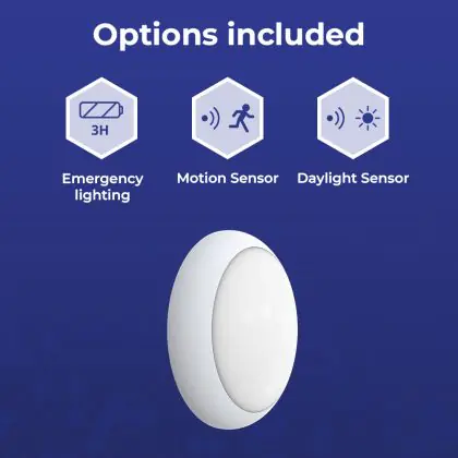 Die Noxion LED-Wand- und Deckenleuchte Pro V2 Weiß 12/16/20W 2400lm - 830-840-865 CCT| 325mm - IP65 - Bewegungs- und Lichtsensor - Not 3H ist eine Feuchtraumleuchte. Sie strahlt Licht in der Farbtemperatur aus und punktet durch eine lange Lebensdauer. Diese Leuchte ist speziell zur Verwendung in Feuchträumen (Keller, Waschräume, etc.) vorgesehen.