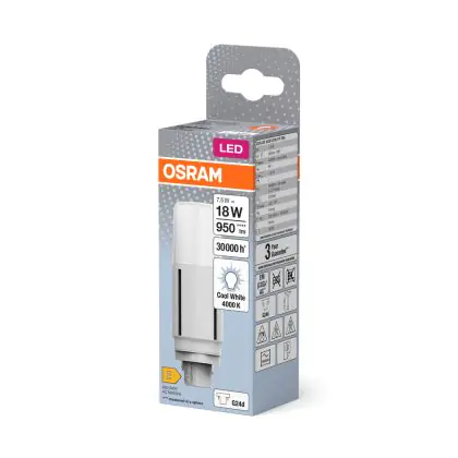 Die Osram Dulux-D LED 7.5W 950lm - 840 Kaltweiß | Ersatz Für 18W ist eine Kompaktleuchtstofflampe von Osram. Das Produkt mit 2 Pins strahlt Licht in der Farbtemperatur 4000K - Kaltweiß aus und punktet durch eine lange Lebensdauer.