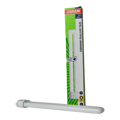 Osram Dulux S/E sind kompakte Leuchtstofflampen und werden mit einem elektronischen Vorschaltgerät verwendet. Osram DULUX S/E 11W/830 2G7 Lumilux Warm White sind 21,4 cm groß und haben einen 2G7 Sockel-Typ, der an eine Steckdose mit 4 Stiften angeschlossen werden kann.