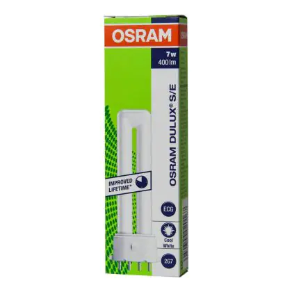 Osram Dulux S/E sind kompakte Leuchtstofflampen, die mit einem elektronischen Vorschaltgerät zu verwenden sind. Osram DULUX S/E 7W/840 2G7 Lumilux Cool White sind mit einem 2G7 Sockel-Typ mit 4 Pins ausgestattet. Sie sind 14,4 cm lang.