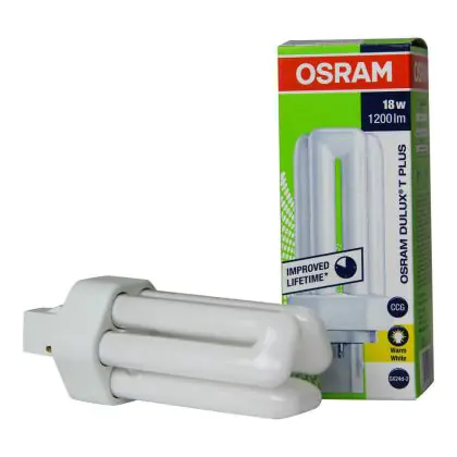 Die Osram Dulux T Plus 18W 830 überzeugt mit einer hohen Farbwiedergabestufe und mit einer warmweißen Farbtemperatur.
