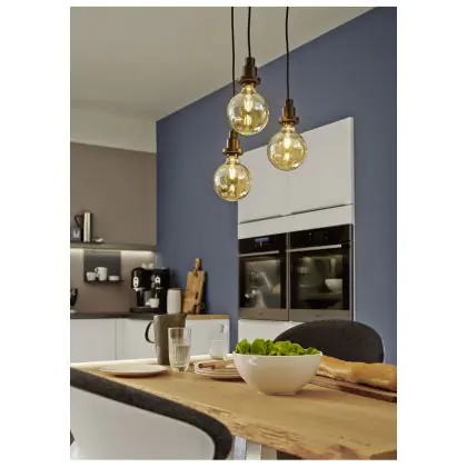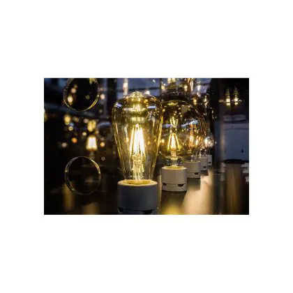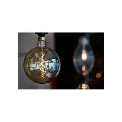 Der Leuchtkörper dieser LED besteht aus goldfarbenem Glas, das einen schönen Vintage-Look erzeugt. Außerdem wird der Blick auf die LED-Filamente im Lampen-Inneren freigegeben, die an die Glühdrähte von Glühbirnen erinnern. Sie sind aber wesentlich innovativer, da sie mit vielen hochmodernen LED-Chips versehen sind und für einen effizienten Energieverbrauch sorgen.