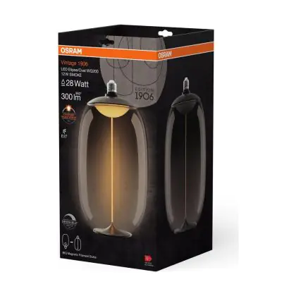 Die Osram Vintage 1906 LED E27 Special Fadenlampe Smoke 12W 300lm - 818 Extra Warmweiß | Dimmbar - Ersatz Für 25W ist eine effiziente E27 LED-Lampe mit Retrodesign und der perfekte Ersatz für Ihre konventionellen 25W Lampen mit E27. Zudem strahlt sie Licht in der Farbtemperatur 1800K - Extra Warmweiß aus und punktet durch eine lange Lebensdauer.