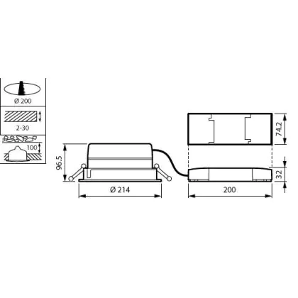 Beschreibung Philips LED Downlight LuxSpace Kompakt geringe Höhe DN570B 16.5W 2200lm 80D - 830 Warmweiß | 214mm - Aluminium Reflektor Type F