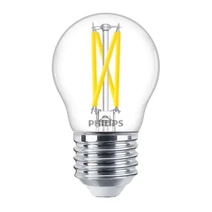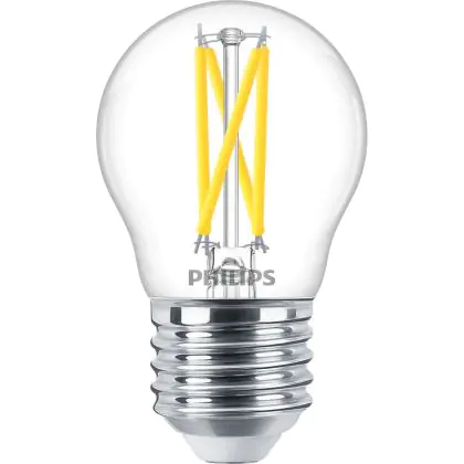 Die Philips MASTER LED Lustre E27 Kugel Fadenlampe Klar 2.5W 340lm - 922-927 Dim To Warm | Höchste Farbwiedergabe - Dimmbar - Ersatz Für 25W ist eine effiziente E27 LED-Lampe mit Retrodesign und der perfekte Ersatz für Ihre konventionellen 25W Lampen mit E27. Zudem strahlt sie Licht in der Farbtemperatur 2200K - 2700K Dim To Warm aus und punktet durch eine lange Lebensdauer.