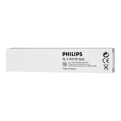 Produkte der Philips Schwarzlicht PL-S Reihe haben eine innere Beschichtung mit einem fluoreszierenden Pulver. Philips PL-S 9W BLB 4P sind mit einem 2G7 Sockel-Typ mit 4 Pins ausgestattet und messen 15,2 cm.