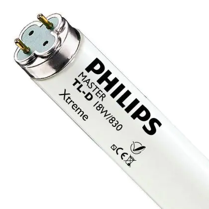 Die Philips MASTER TL-D Xtreme 18W - 830 Warmweiß | 60cm ist eine Leuchtstoffröhre mit einer Länge von 600 mm. Das Produkt hat einen Durchmesser von 28 mm. Die Röhre strahlt Licht in der Farbtemperatur 3000K - Warmweiß aus und punktet durch eine lange Lebensdauer.