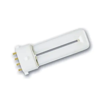 Jede Kompaktleuchtstofflampe dieses Bereichs hat einen Basistyp 2G7 mit vier Metallstiften. Sylvania Lynx-SE 7W 840 4Phaben eine Größe von 11,5 cm.